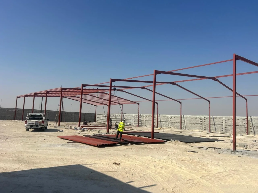 يقوم فريق العمل بتركيب ألواح ساندوتش بانل والذي يتميز بالعديد من المزايا والخصائص وتوفير مساحات كبيرة من الظل كما تعمل على توفير بيئة آمنة تمامًا في توفير بيئة مناسبة وملائمة لتربية الدواجن وتقليل التكاليف والأسعار، من خلال هذه الألواح والتي تتناسب في فصل الصيف ودرجات الحرارة المرتفعة وفي فصل الشتاء مياه الأمطار، كي تصبح بيئة مناسبة بأقل وأرخص سعر.